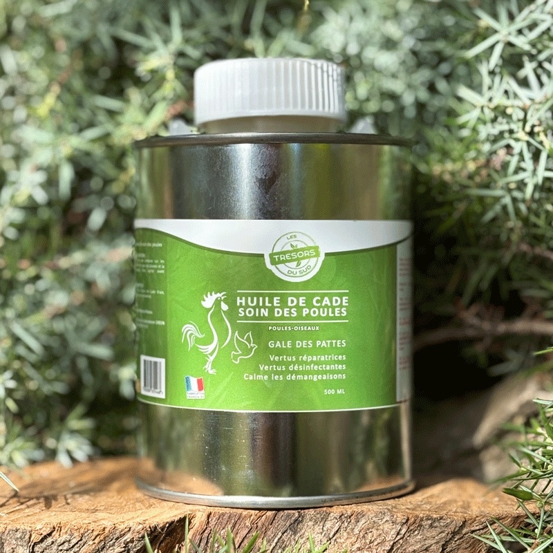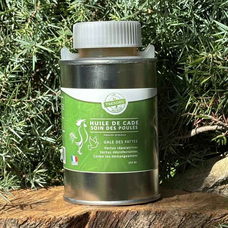 L‘ huile de cade véritable est un produit de fabrication FRANCAISE, pour les soins des volailles et de la gale des pattes des volailles. L’huile de cade est utilisée depuis des millénaires pour les soins des volailles et de la gale des pattes des volailles.